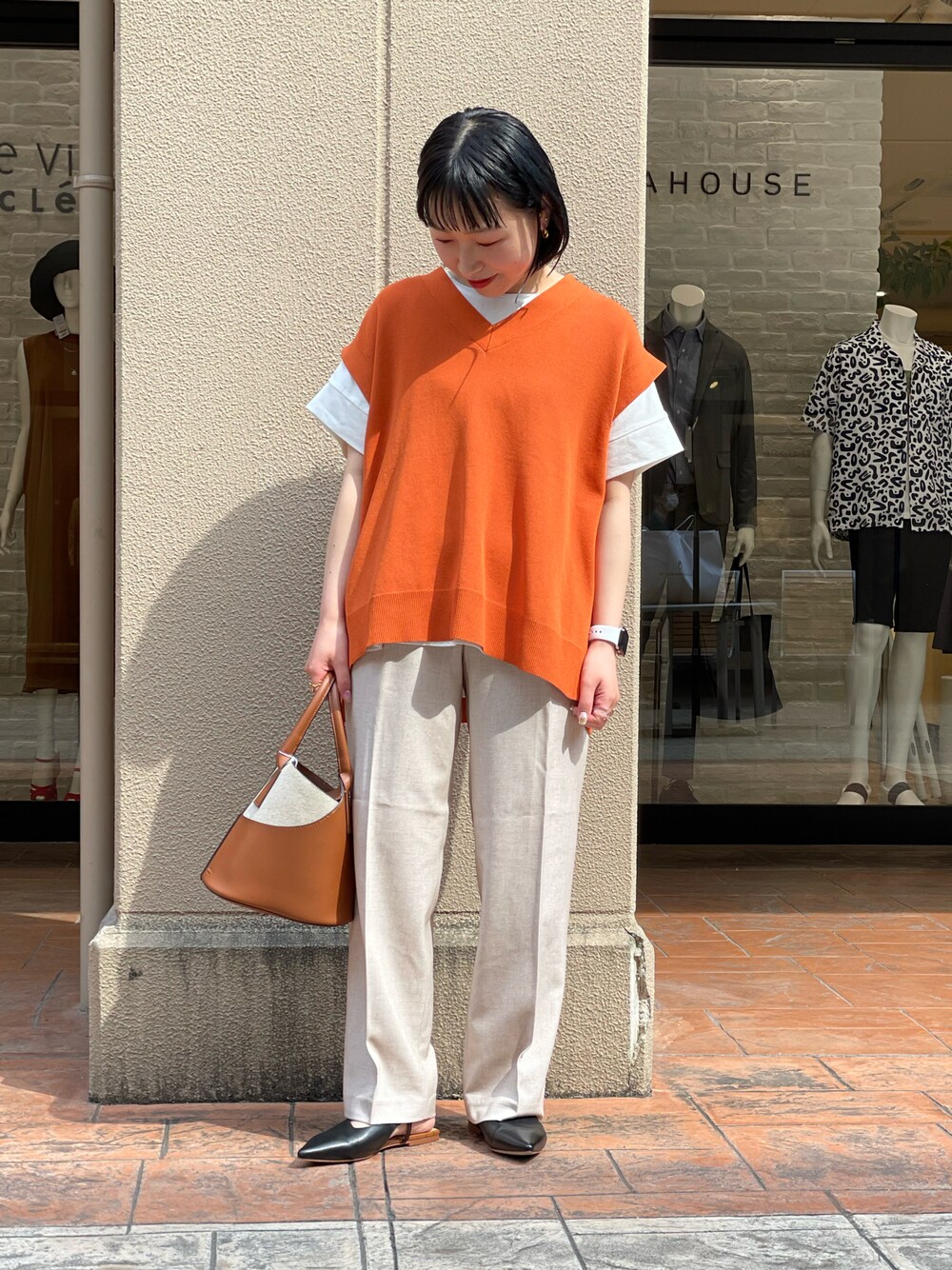 いつものコーデにニットセーターをplus🍊 ボトムはリネン混のキレイめパンツで大人コーデ✨