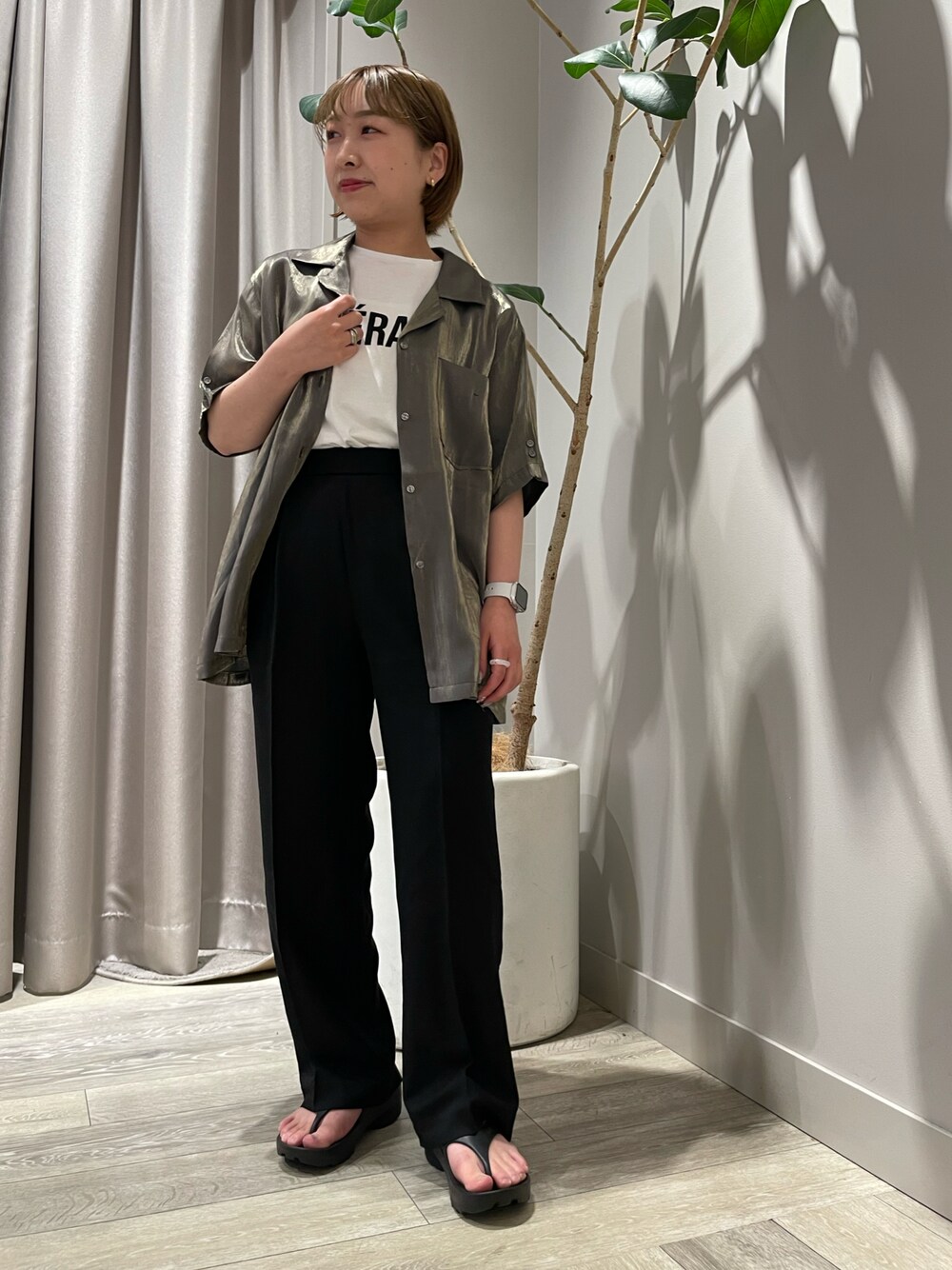 光沢感のある艶っとしたシャツで個性的に✨️ 毎年大人気の感嘆パンツシリーズはカジュアルにもキレイめにも履けるのでオススメです◎