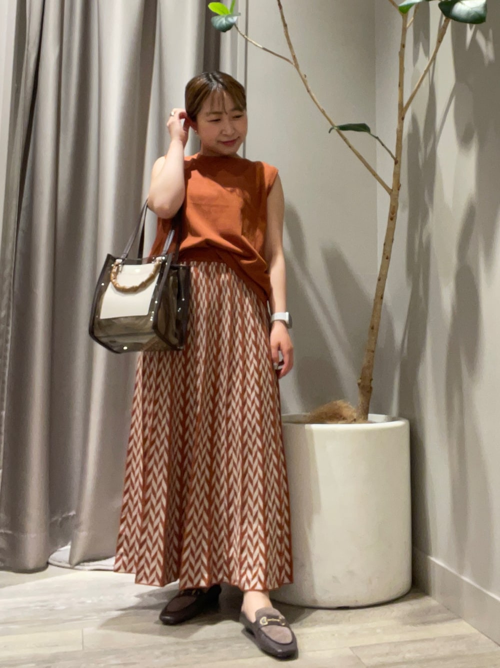 ジャガード柄のスカートがアクセントになって可愛いセットアップ♥️ 涼しくて楽ちんコーデです!!