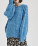 ミックスカラーが可愛いシャギーニット🌐🤍同系色のデニムでまとめてシルバーをアクセントに!! タックワイドデニムは形が綺麗でお気に入りです👖
