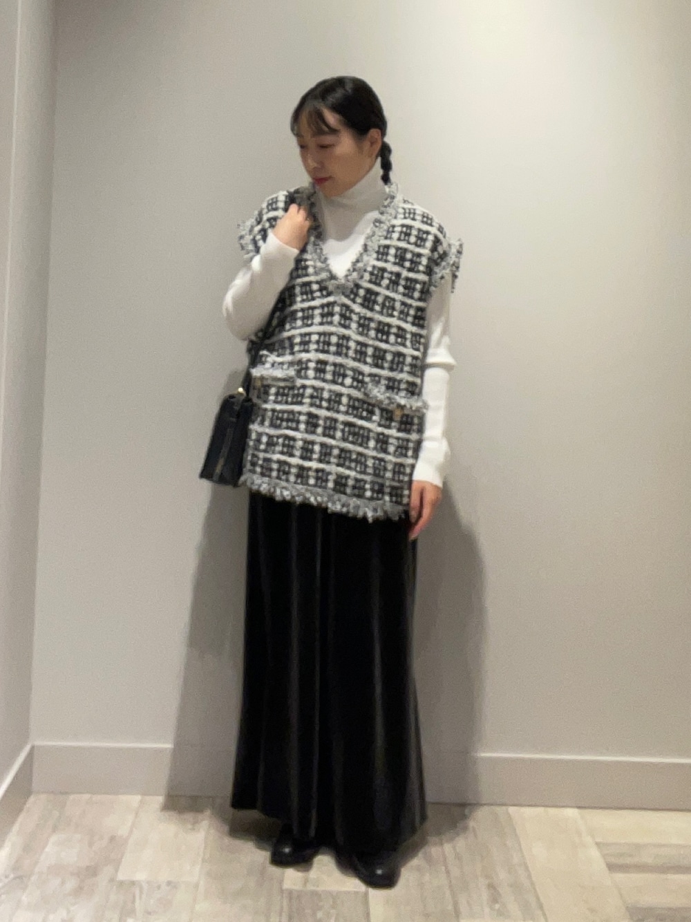 ツイードベストが主役の大人可愛いコーデ♥️ 秋服はやっぱりモノトーンが可愛いですね。。。