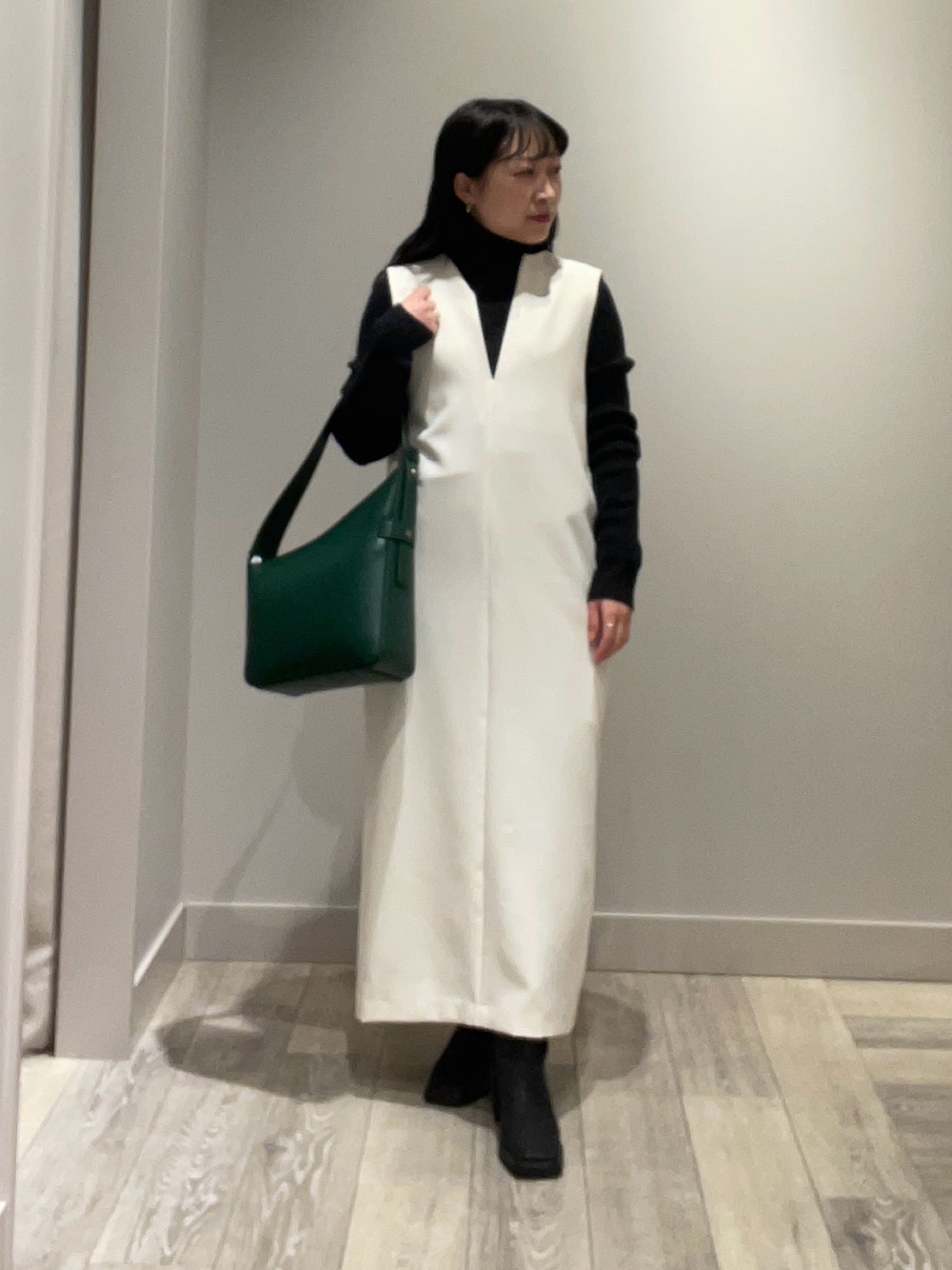 白のジャンパースカートで大人女子🤍