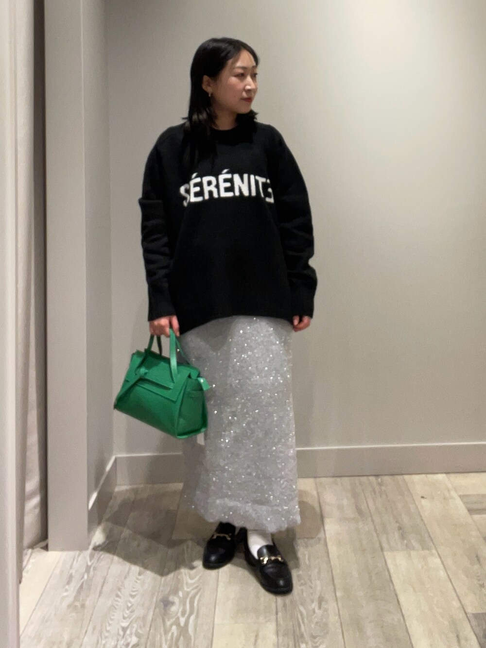 シルバーのニットスカートは履きやすくて更にコーディネートを今年っぽくしてくれてオススメです✨️