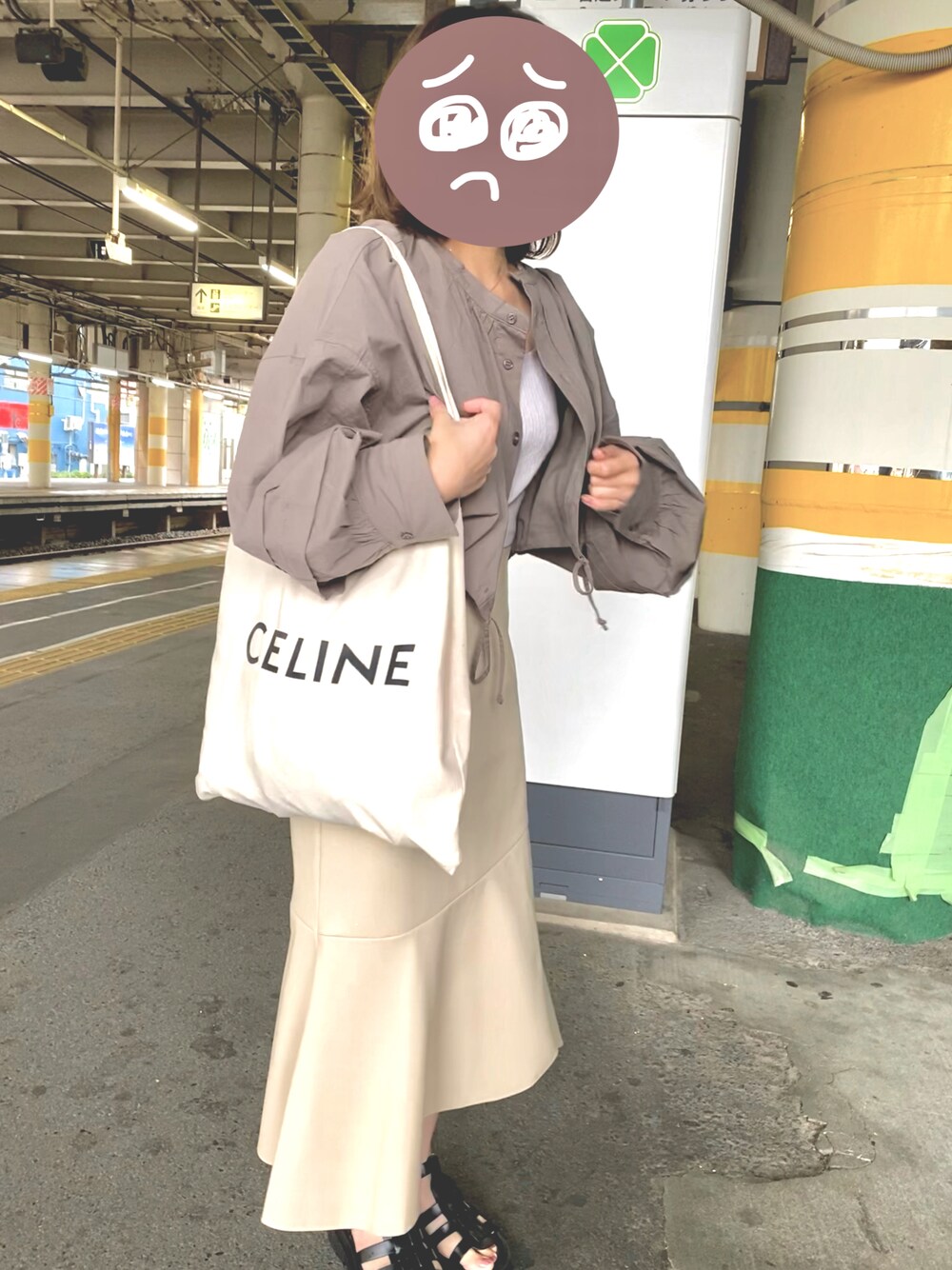 昨日載せたコーデの全身👚 スカートはVISのやつ 履きやすすぎて2色買い足した💓 トートバッグも韓国の通販で 買ったやつ、かわいーー🕊