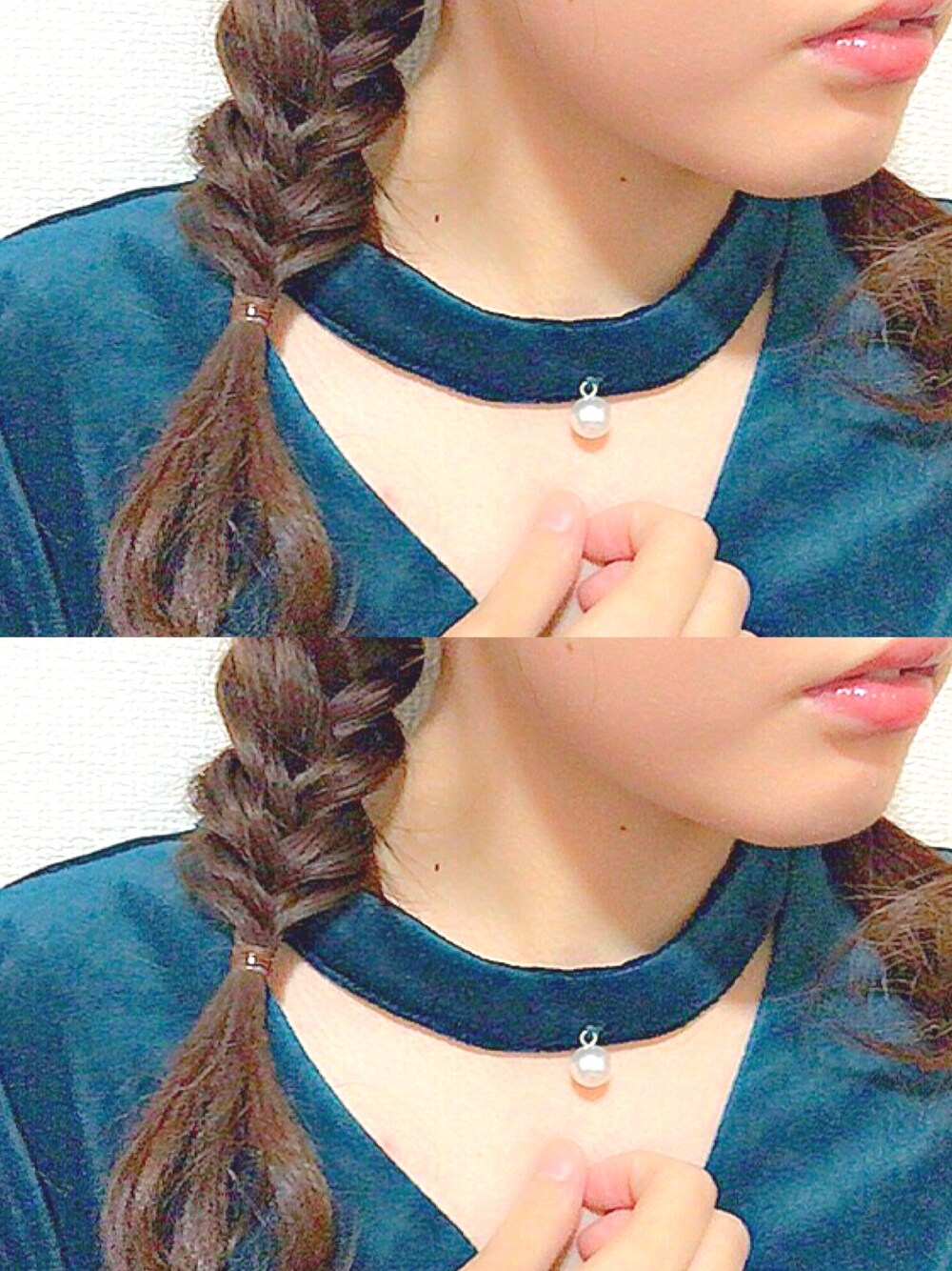 緑色ベロアのトップス×フィッシュボーン。