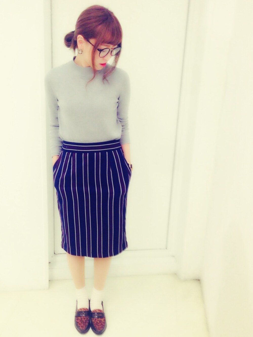 Minaのパンツ「【A/W】レジメンタルストライプ柄ストレッチタイトスカート」を使ったコーディネート