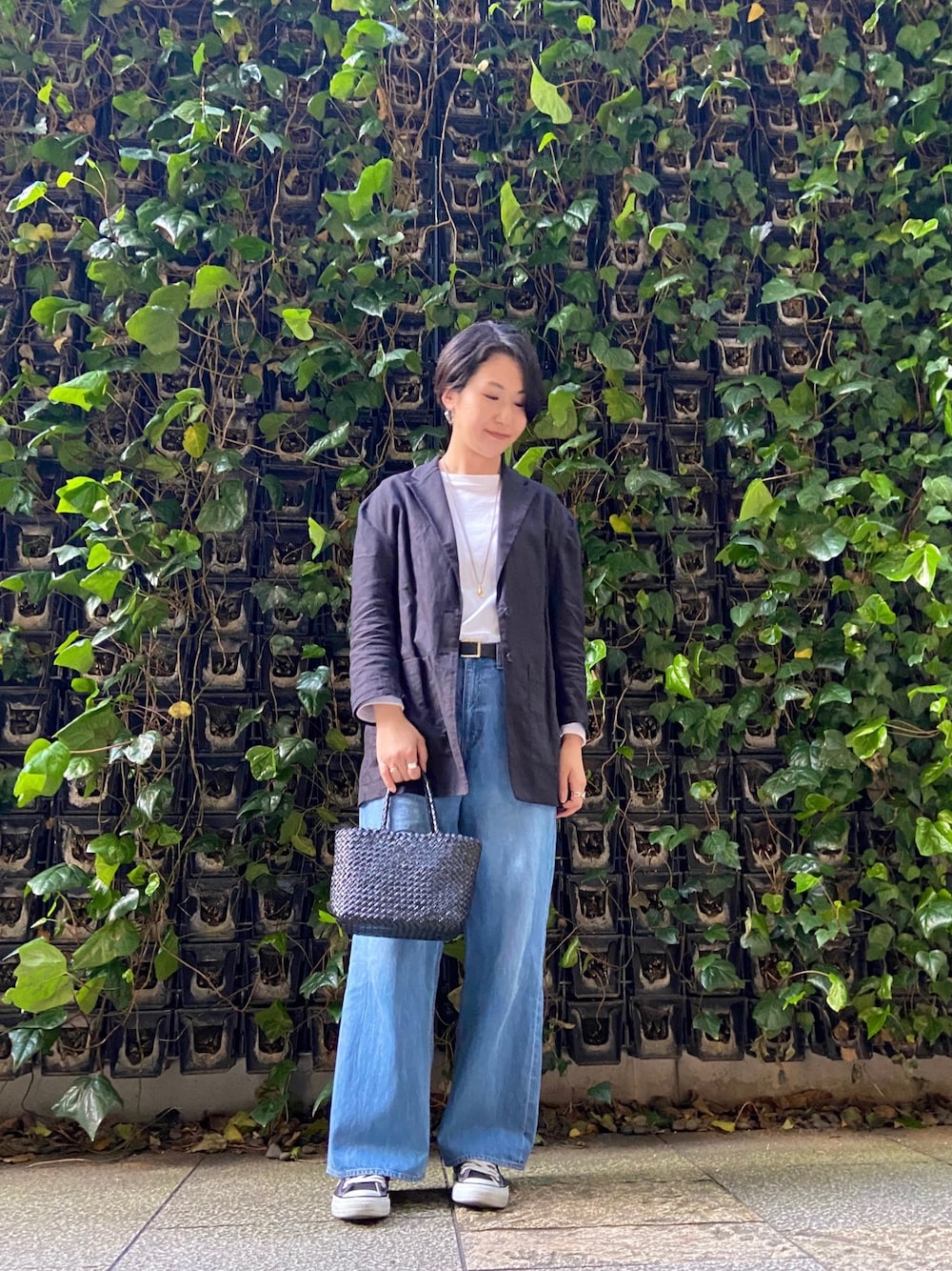 軽い羽織り感覚で使えるジャケットはヒップの隠れる丈感です。 リネンで涼しく夏まで活躍してくれそうです! ゆったりとしたセミワイドデニムでカジュアルに◎