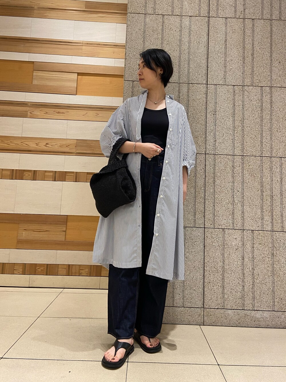 ◆身長:166cm ◆年齢:40代 ◆骨格:ウェーブ ◆パーソナルカラー:イエベ秋 ▽着用サイズ/コメント 【シャツワンピース】 フリーサイズ 袖の立体的なフォルムが印象的で一枚で決まるワンピースです!高身長の方には丈が短めなので下にパンツを重ねていただくと◎ アイロンがけ不要な素材がうれしいポイント! 【デニム】 Lサイズ 厚すぎず柔らかい素材感で夏にも履きやすいです。ワイドすぎないのでワンピースとのレイヤードにもおすすめです! 【サンダル】 38サイズ 足のサイズ24cmでちょうど良かったです。 レザーが柔らかくトング部分も痛くなりづらいです!気持ち厚底でクッション性も◎
