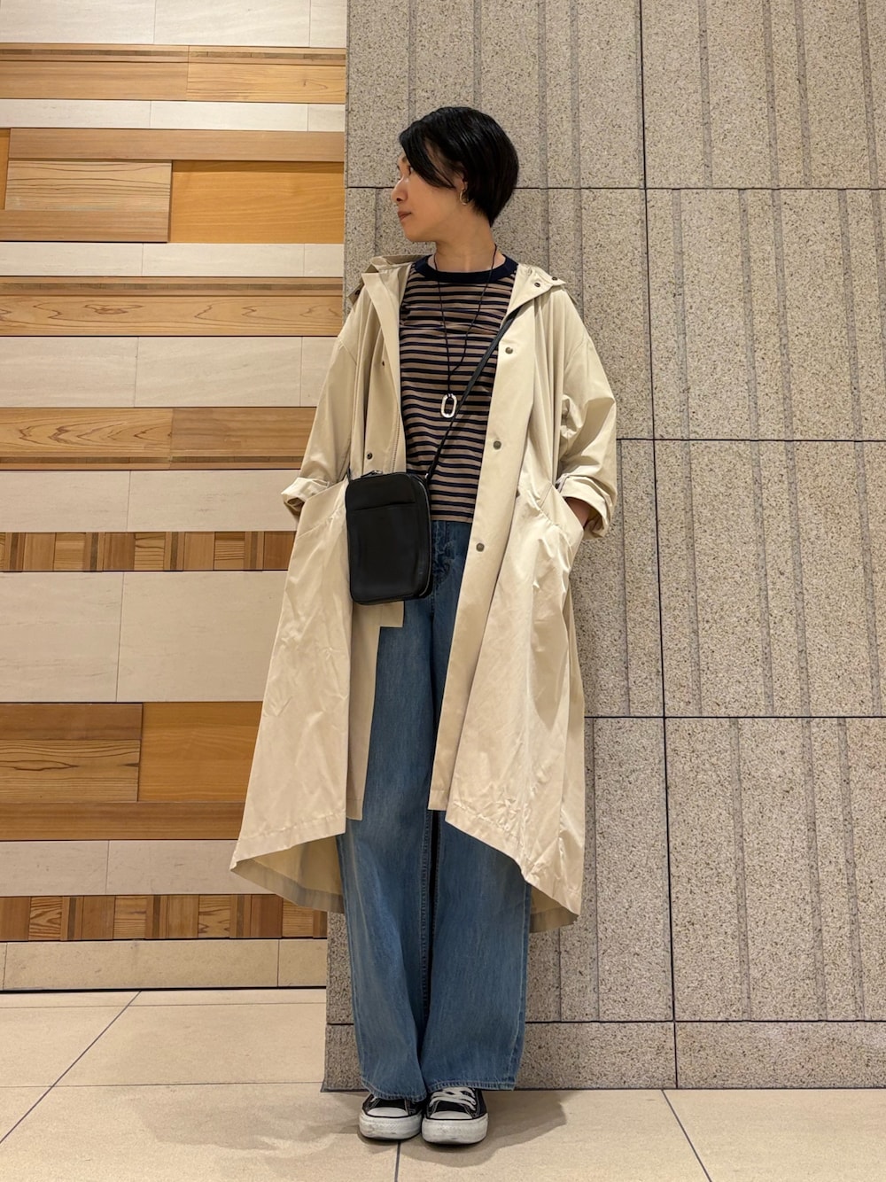 ◆身長:166cm ◆年齢:40代 ◆骨格:ウェーブ ◆パーソナルカラー:イエベ秋 ▽着用サイズ/コメント 【コート】 フリーサイズ フードの取り外し可能でステンカラーコートとしても着ていただけます!防風、微撥水と機能面も◎ 【デニム】 Lサイズ セミワイドでボリュームが気にならずすっきりとしたシルエットに。とても柔らかく履きやすいデニムです! 【ショルダーバッグ】 カードポケットと小銭入れが付いており財布代わりにもなります!2層のポケット付きで小さいながら収納力◎