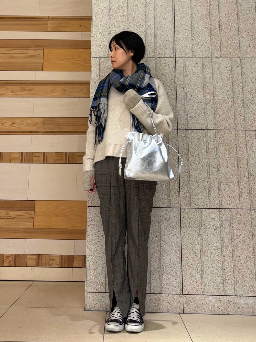 ◆身長:166cm ◆年齢:40代 ◆骨格:ウェーブ ◆パーソナルカラー:イエベ秋 ▽着用サイズ/コメント 【マフラー】 ウール100%で暖かく大判なのでブランケット代わりに羽織っても◎ 落ち着いたブルーとグリーンのチェックが大人ぽくシンプルなニットのポイントに! 【グローブ】 ベビーアルパカ使用でふわふわの肌触りです。フィンガーレスなのでスマホ操作もしやすいです◎重なっている部分を伸ばせばアームカバーにもアレンジ可能な便利なグローブです!