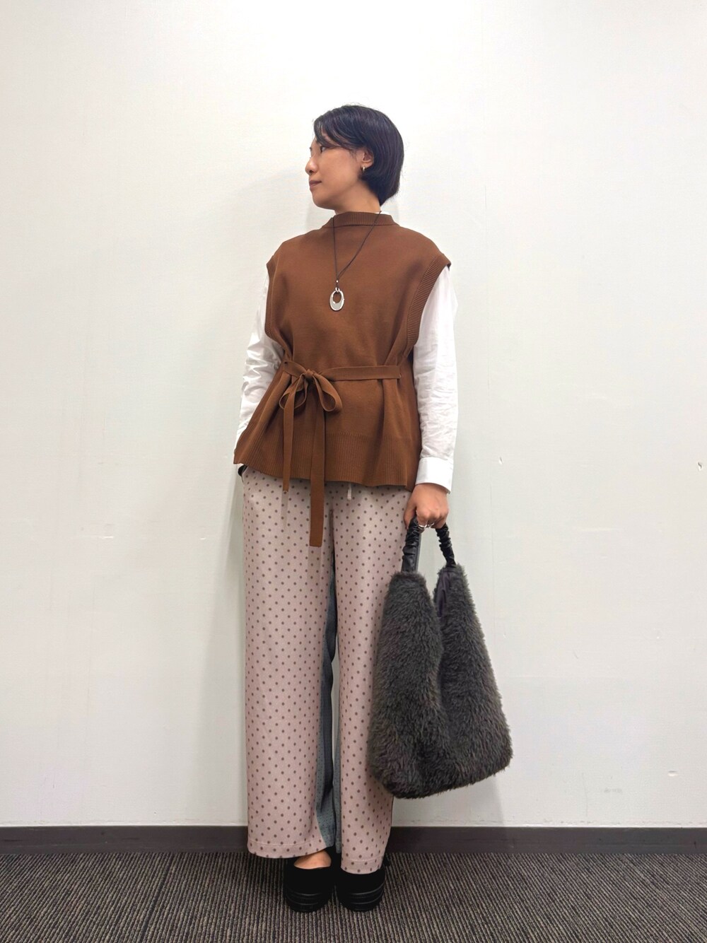 fuku(コレックス 渋谷ヒカリエShinQs店)のベスト「ベルト付バックスリットニットベスト」を使ったコーディネート