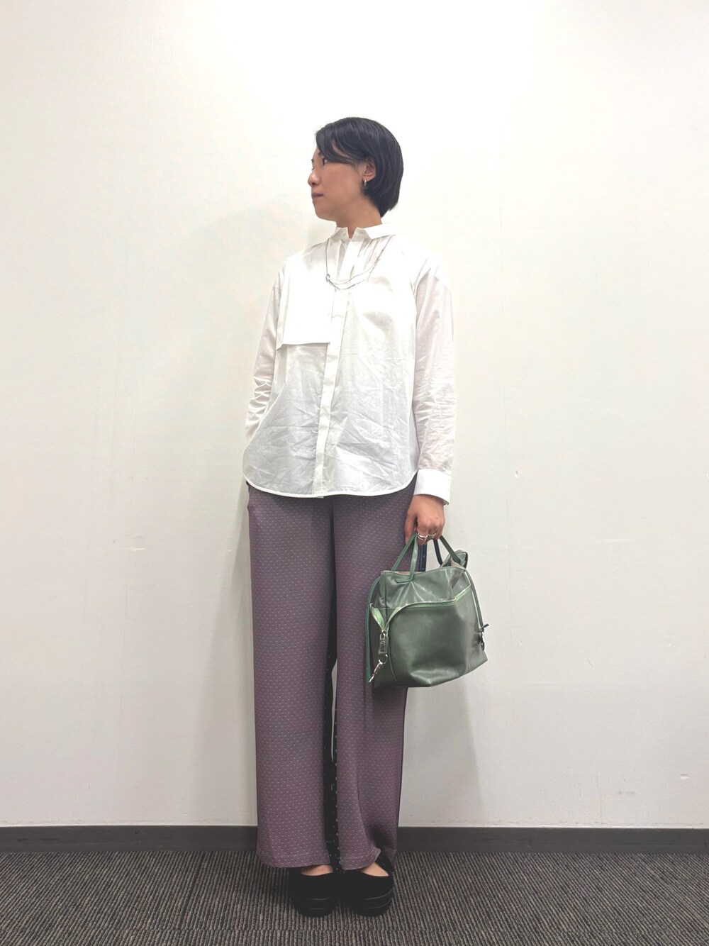 ◆身長:166cm ◆年齢:40代 ◆骨格:ウェーブ ◆パーソナルカラー:イエベ秋 ▽着用サイズ/コメント 【シャツ】 フリーサイズ トレンチコートの胸元フラップのようなデザインが白シャツでもシンプルすぎず◎ ベーシックなコットン素材でパンツとの相性も よく便利な一枚。 【パンツ】 フリーサイズ 前後で大胆に色柄を変えたオリジナルプリントです。シワになりづらくケアも簡単なので旅行用にもおすすめです!