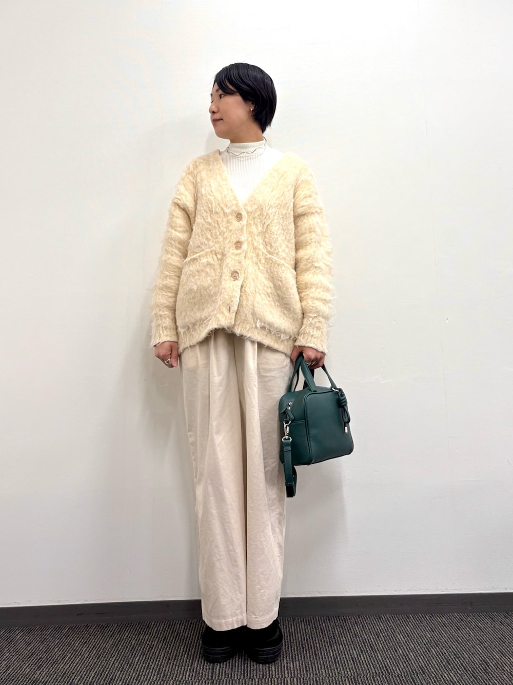◆身長:166cm ◆年齢:40代 ◆骨格:ウェーブ ◆パーソナルカラー:イエベ秋 ▽着用サイズ/コメント 【カーディガン】 フリーサイズ ヘアリーで軽い着心地のニットカーディガンはアウター代わりに羽織るのもおすすめです! 毛抜けも比較的少なく扱いやすいのも◎ 【バッグ】 ころんとしたシルエットがかわいいボストンバッグです!付属のチャームは取り外しできるのでお持ちのバッグに合わせても◎ 外ポケットもありマチも広く見た目以上の収納力です!