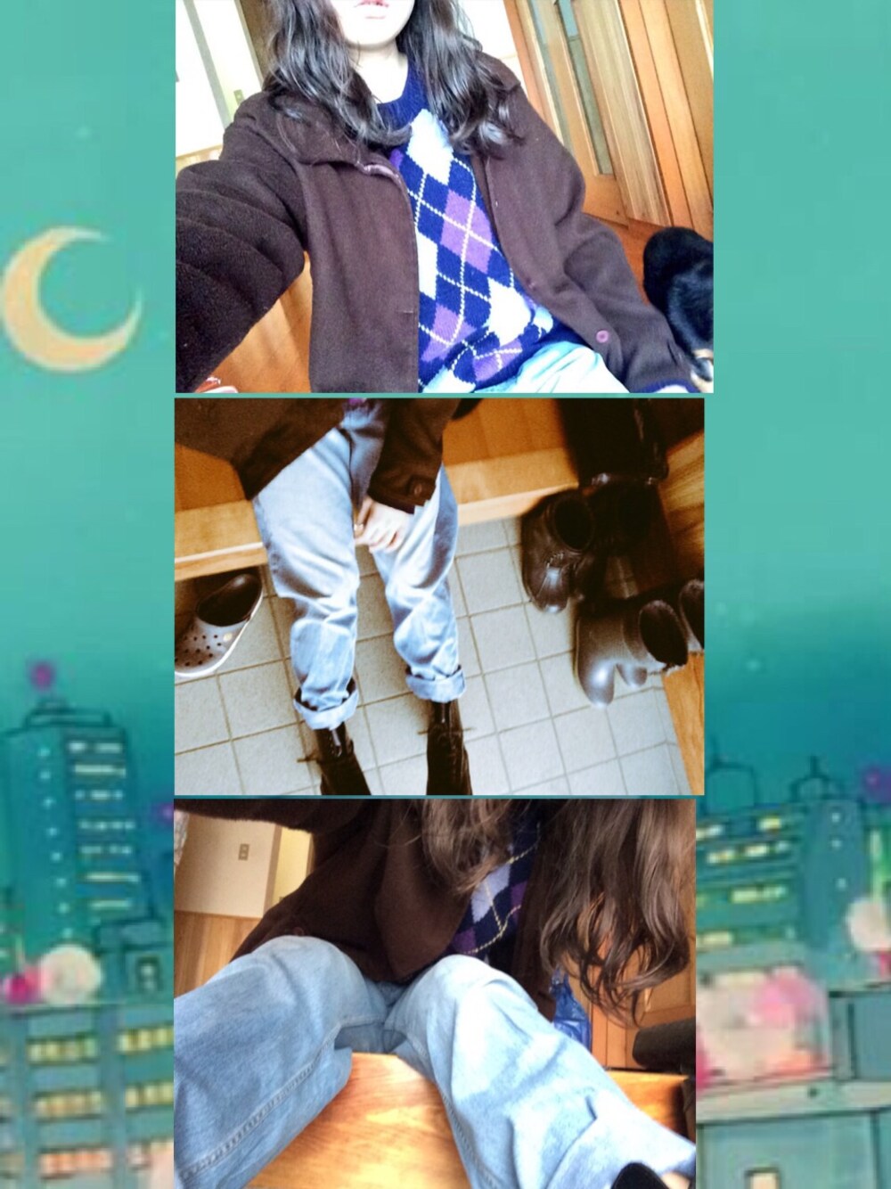 ダボダボジーンズにゆる〜いニットとコートで全身ゆるゆるコーデ🌞