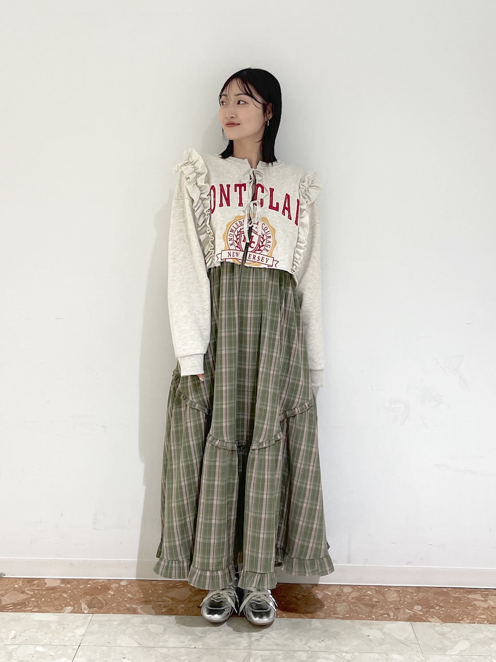 ご覧いただきありがとうございます! ・159cm ・骨格ウェーブ 《カレッジスウェットボレロ》size:free ショート丈が可愛いスウェットボレロ! 159cmでお腹が少し出るくらいなので、キャミワンピースに羽織ったり、ハイウェストのデニム合わせなどがオススメです😊 《キャミワンピース》size:free 肩紐で長さ調節と、後ろのリボンで着幅も変えていただけるので低身長さんも安心して着ていただけます◎ 切り替え位置も胸下と上の方なのでスタイルアップ効果も抜群! インナー次第ではシーズン問わず着れちゃいます! 写真のように上からニットやスウェットなどを重ねて着るのも可愛くてオススメです♩ Instagram:wc__mina TikTok:mina_1999