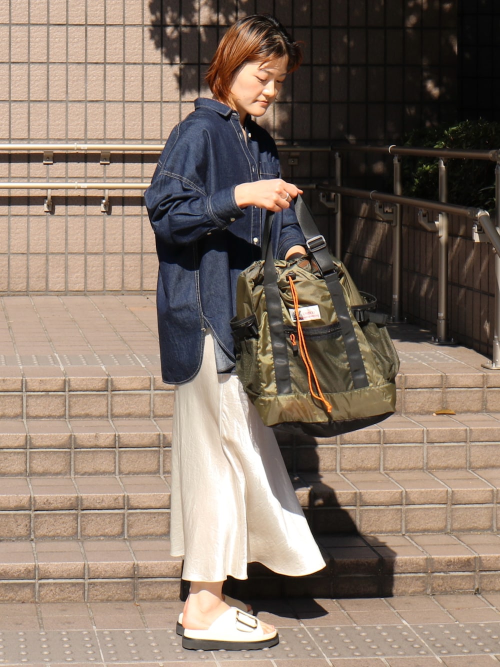 【プロフィール】 身長:170 骨格タイプ:骨格ストレート 肩幅広め 普段着用サイズ: トップス38~40/M~L ボトム40/デニム25~26 【着用アイテム】 シャツ、スカートともにワンサイズ展開 シューズはサンプルサイズです。 ▼サイズ感 シャツ ルージュのヒット商品のデニムシャツは170センチの私でもしっかりオーバーサイズを演出出来るビックサイズが可愛いです! スカート 身長170、W70前後、ヒップ95前後の下半身にボリュームある私にはかなりぴたぴたなサイズです。オフホワイトには裏地が付いていますが裏地は伸びずきついので、ガードルのような透けない下着と合わせて裏地なしで着用が綺麗に着られます◎ バッグ トートバッグにも、リュックにもなる2WAY仕様です!また、口の紐で丸い形にしたり広げたりアレンジも♾️✨ A4サイズはもちろん、ノートパソコンも余裕で入る大きさが便利です◎ ▼着心地•生地感 シャツ しっかり厚みのあるデニム素材。袖をたくし上げた時のシワ感や、シルエットがカッコよく出てくれます。 スカート 上品なツヤの薄手素材。ウエストはゴムです! 私はヒップ通すのが少し大変でしたがウエストまで上がれば苦しくないです◎ バッグ 軽くて丈夫なリップストップ素材を使用しているので大きさの割に空気みたいな軽さです! リップストップ地は丈夫さが特徴なので重いものや、たくさんの荷物にも◎