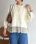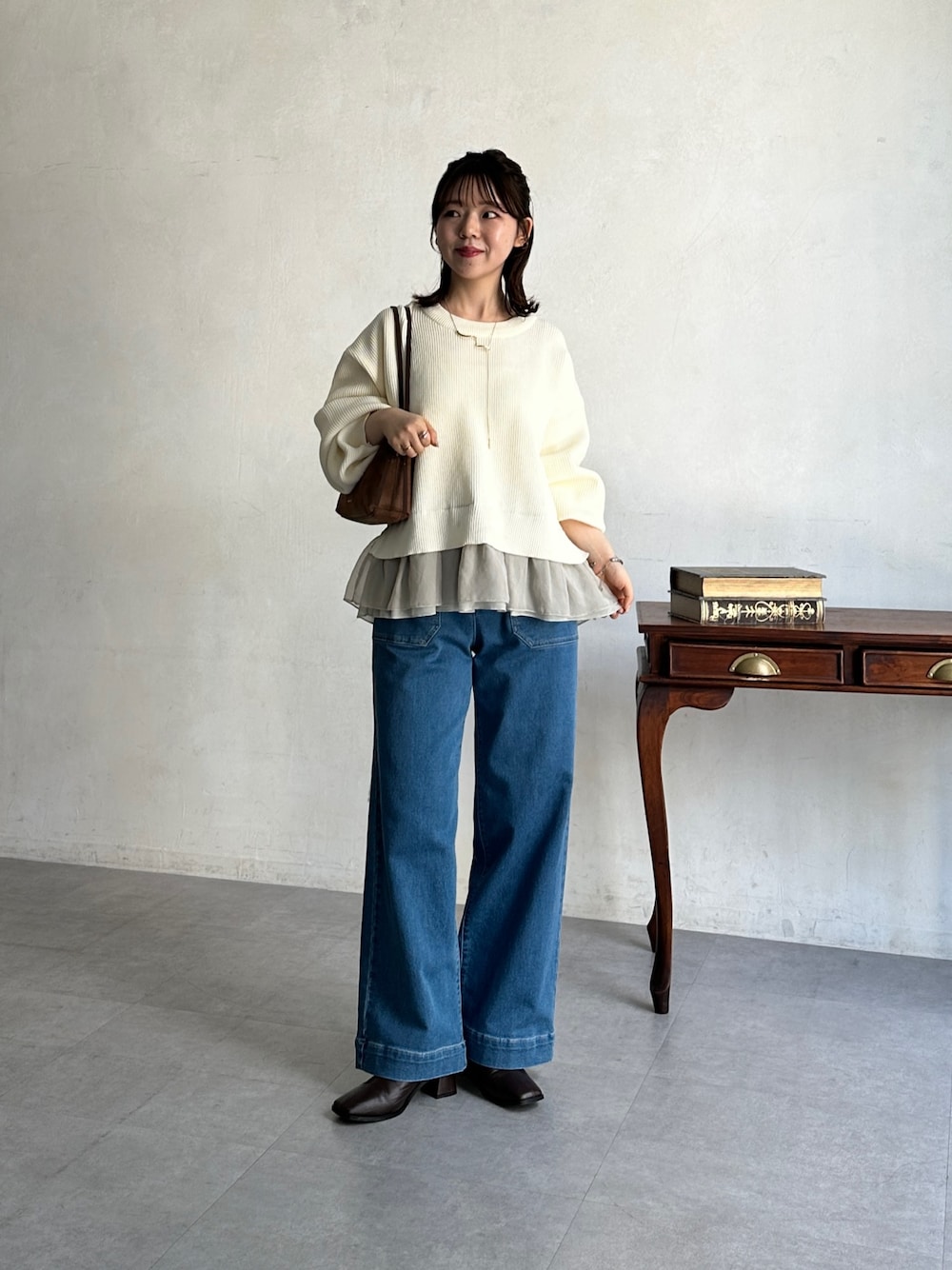 軽量素材×シアーフリルのニットで さりげない軽やかさが出ます🪽 腰まわりが隠れるので、 ボトムはワイドよりもストレートシルエットがおすすめ。