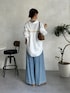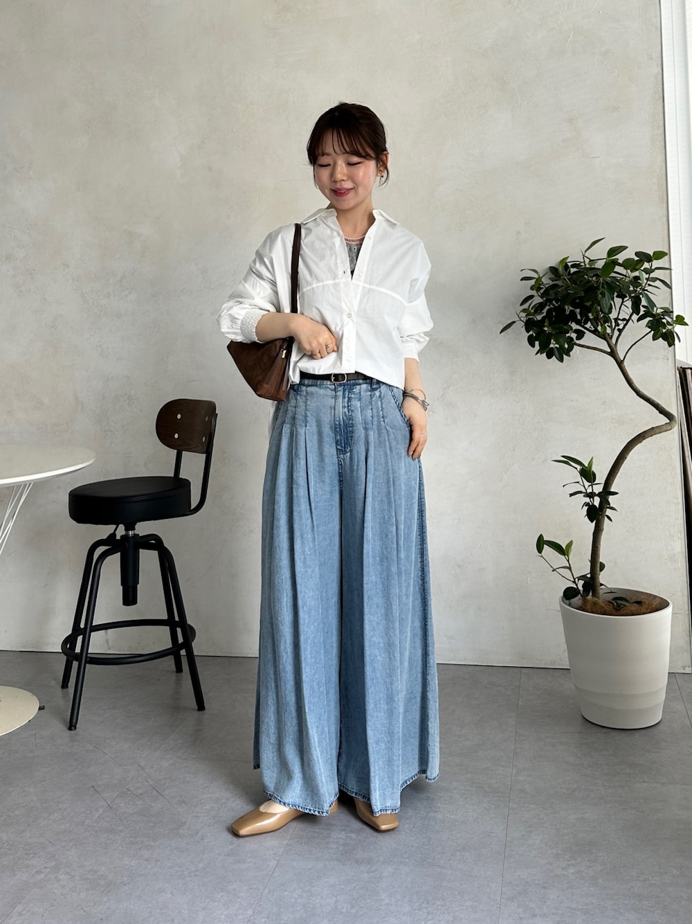 定番のコーデはバックラインシャツ×落ち感ワイドデニムのアイテム選びで差がつきます! シャツは首元を1〜2個開けて抜け感をプラスし、前だけインすることでバランス良く着こなせます✨