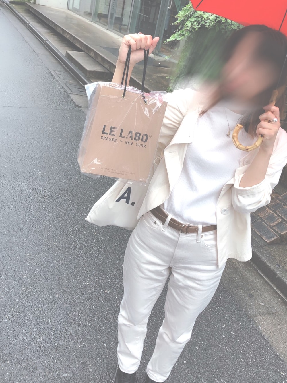 赤い傘がさしたくて☂️ 傘が目立つホワイトコーデに。
