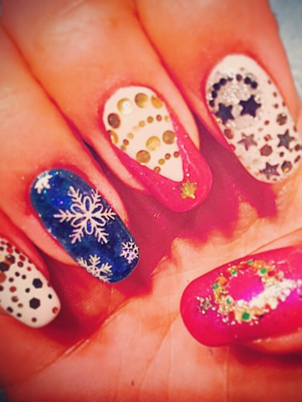 気の早いクリスマスネイル^ ^♡ 我ながら上出来\(^o^)/ リースにツリー ディズニー行く前に もっとかわいくしよー♡