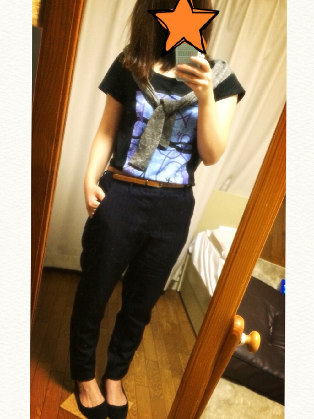 上下GUのプチプラコーデ。 パンプス:夏のセール品 ベルト:多分ハニーズで買ったボトムの付属品