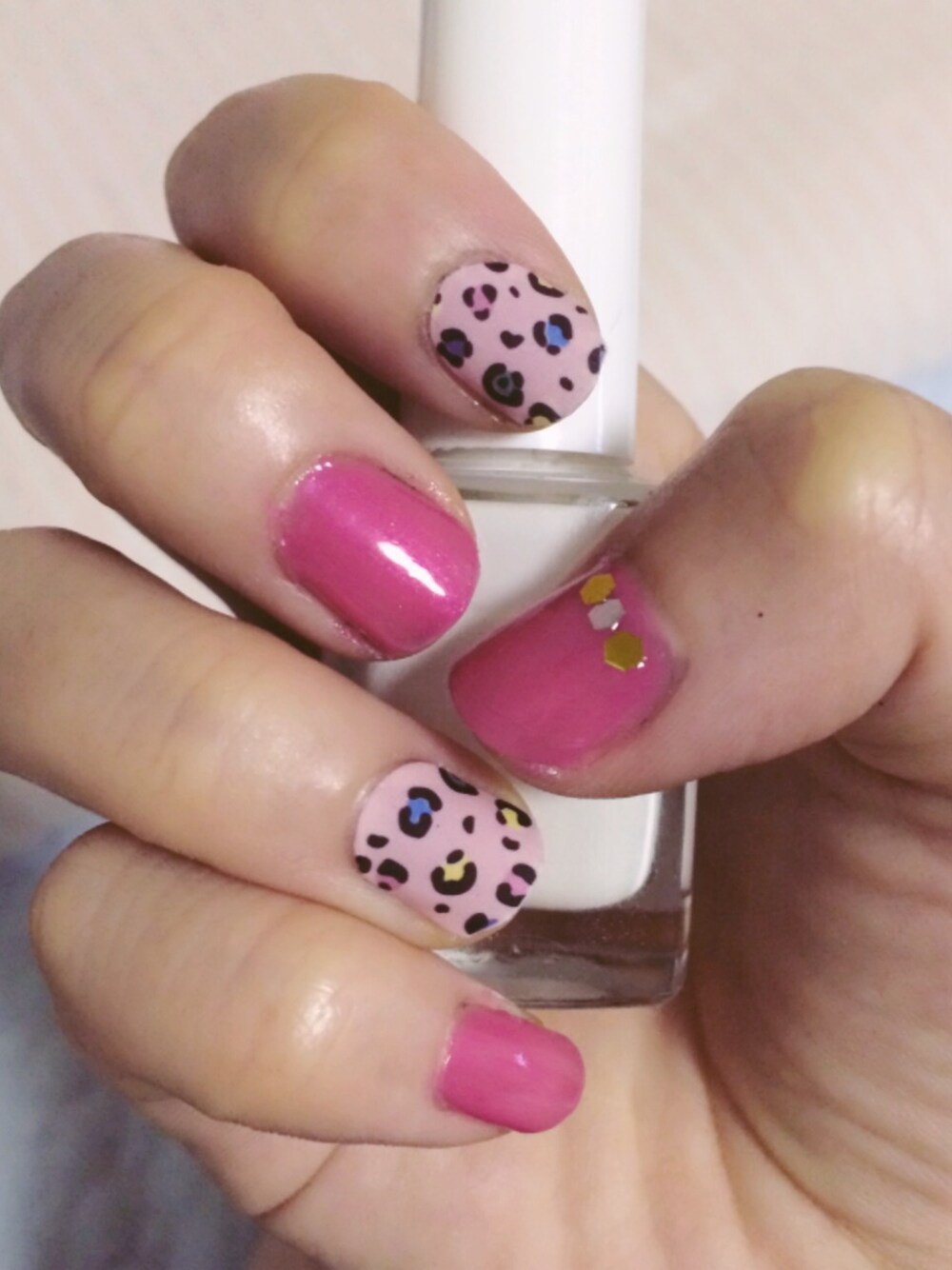 ピンクレオパードネイル レオパード部分はネイルシールです。 ネイルシール大好き!