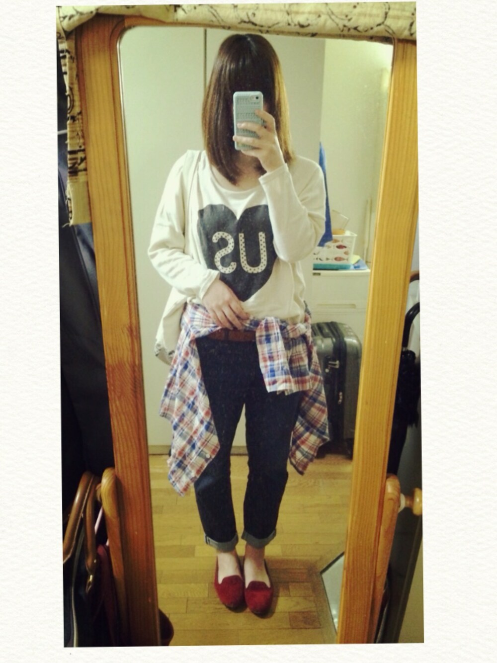 濃い色のボーイフレンドデニムが欲しくて UNIQLOで買っちゃった。 仕事に着ていけないからあんまりデニム 買わないんだけど、やっぱかわいい〜♡ 明日の女子会コーデはこれに決定!