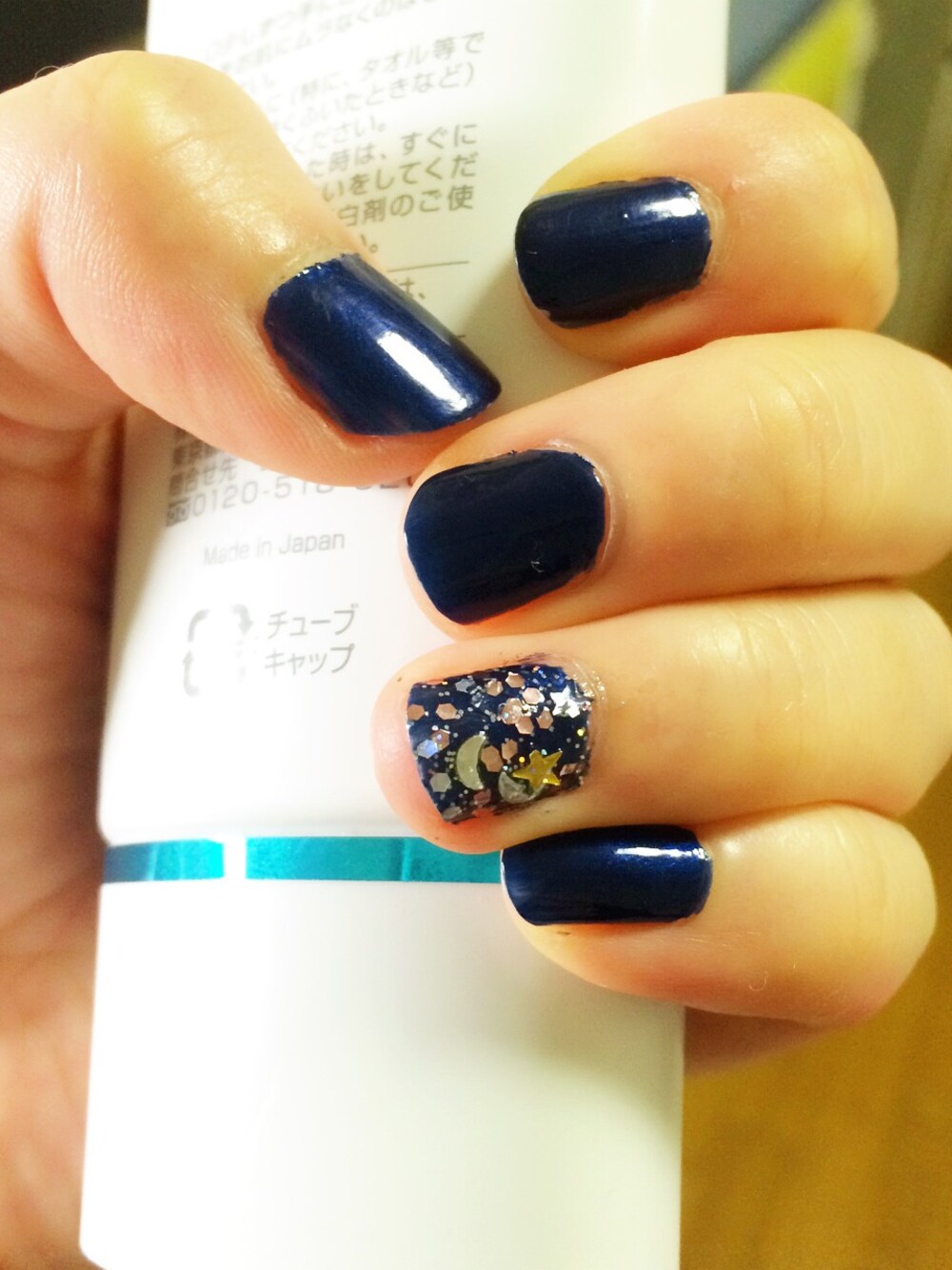 HOMEIの限定デザイン 「流れ星」を使ってみましたー 月と星がかわいらしいです。 もっとセルフネイルうまくなりたいなぁ