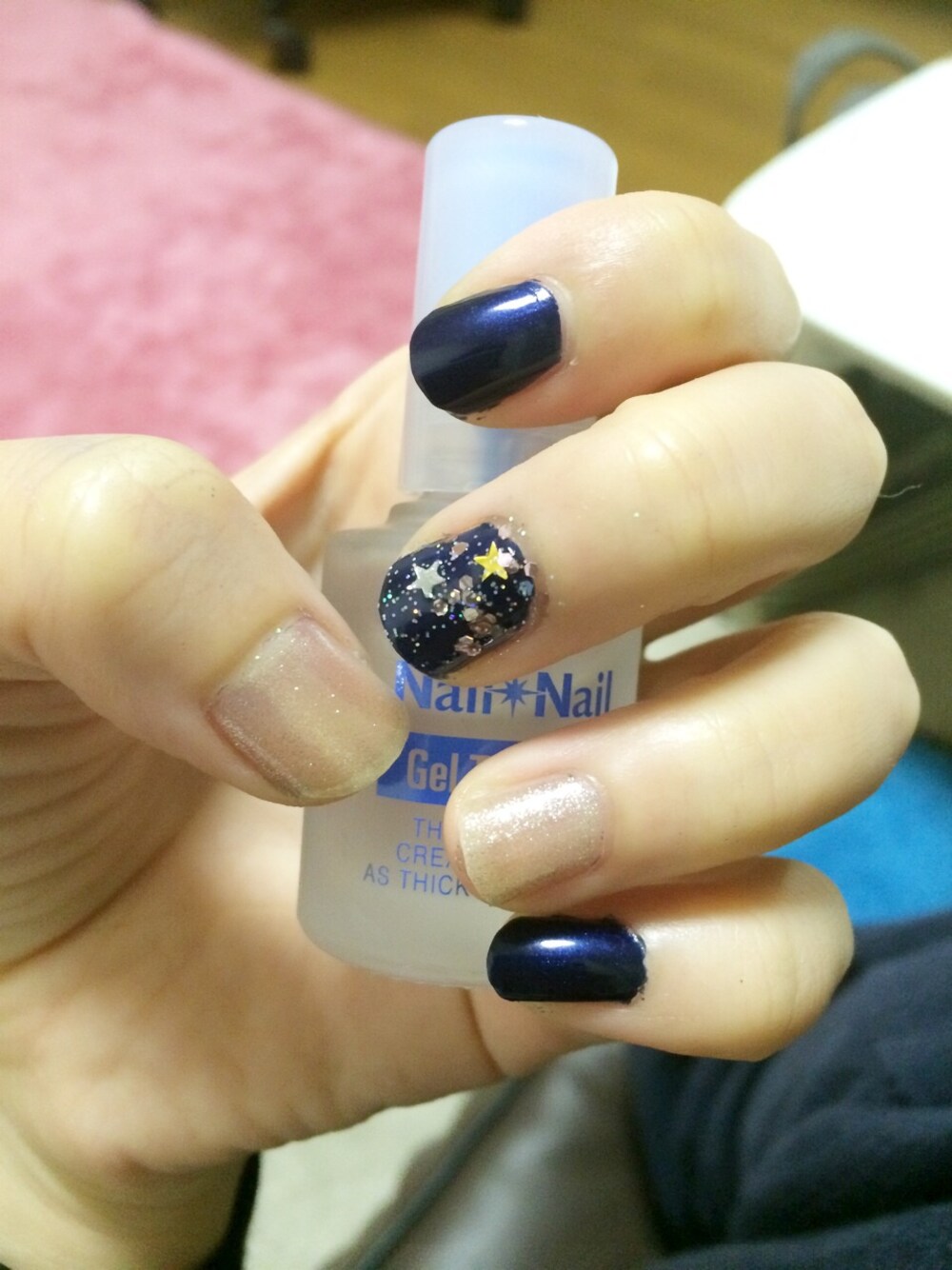 結婚式ネイル2回目。 2週連続なんです…笑 今度はシルバー×ネイビーで。 ホロはHOMEIの「流れ星」です。 前使ったゴールドと今回のシルバーは ダイソーのマニキュアです。 塗りやすくてオススメ!