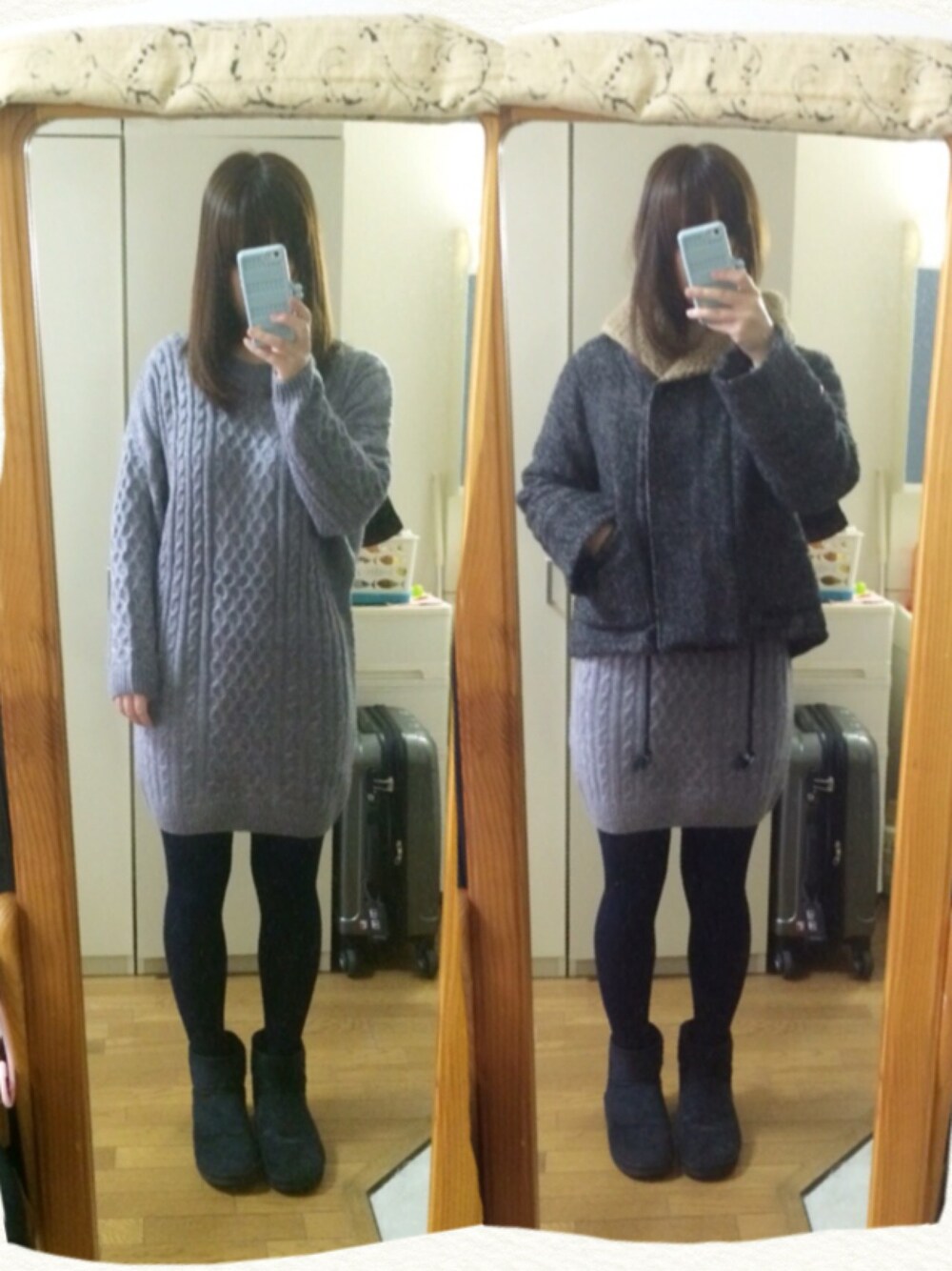 おろしたてケーブルニットワンピース。 タイツはネイビーで合わせました。 これからいっぱい着ようっと! フードのジャケットは2年前ぐらいに買った けど、めっちゃお気に入り。 今冬初めて着ました。 今年はKBFの福袋買うぞ! 楽しみ!!