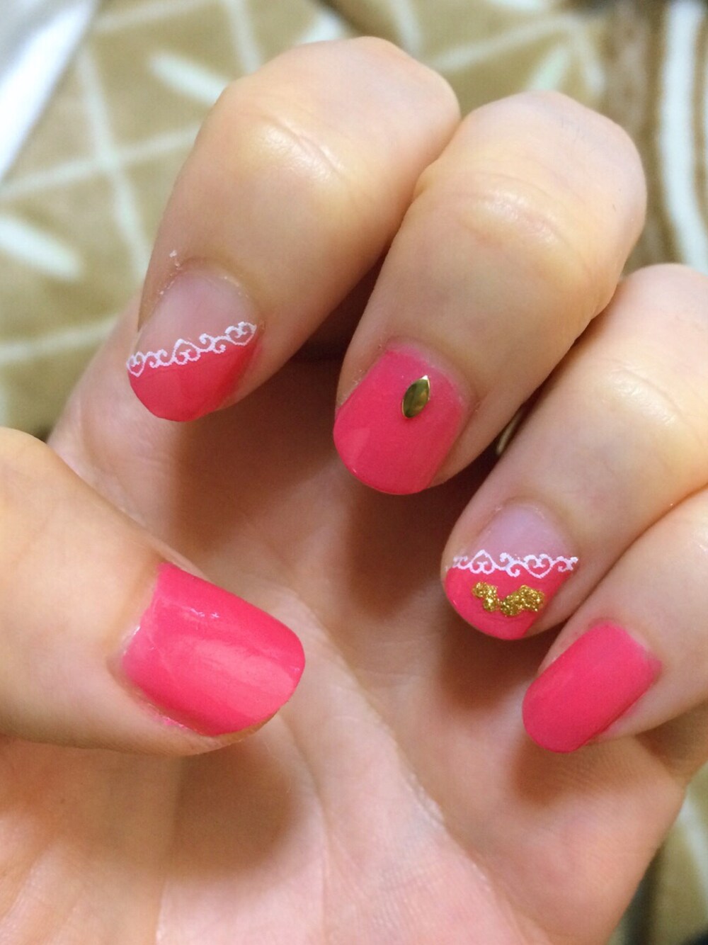 ダイソーのポリッシュ、スタッズ、ネイルシールで 300円ネイル☆ ちょっと私には甘すぎた感じ…笑