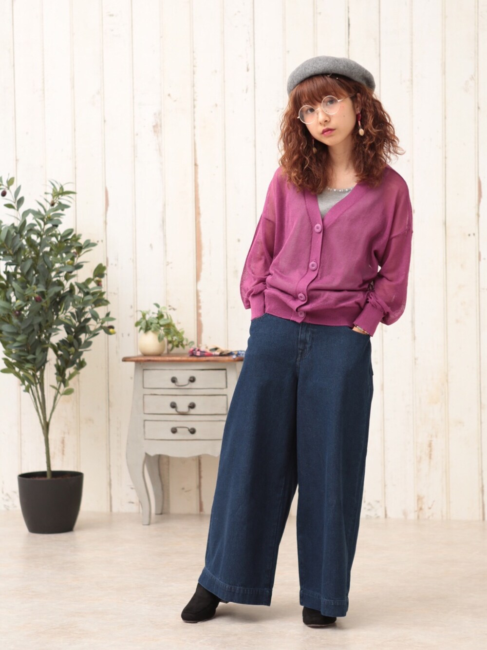 ピタちゃんのカーディガン/ボレロ「Vネックショートカーデ」を使ったコーディネート