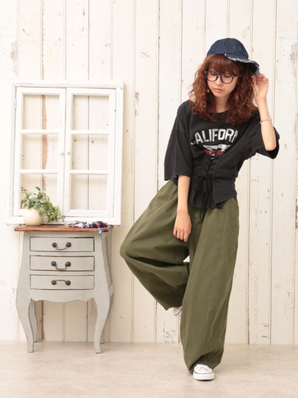 ピタちゃんのTシャツ/カットソー「コルセットプリントTシャツ」を使ったコーディネート