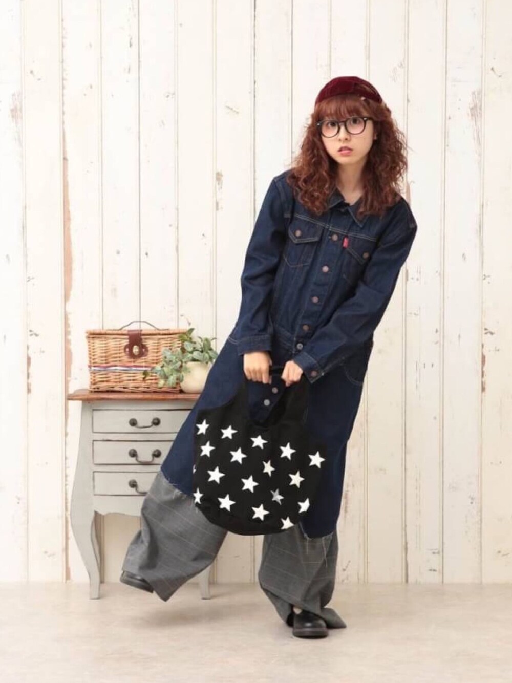 ロングジージャンにダボっとパンツコーデ♪( ´θ`)ノ