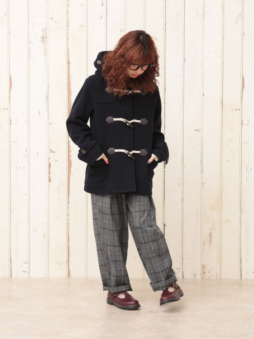 ダッフルコートとチェックパンツの組み合わせは最高だ(^O^)/