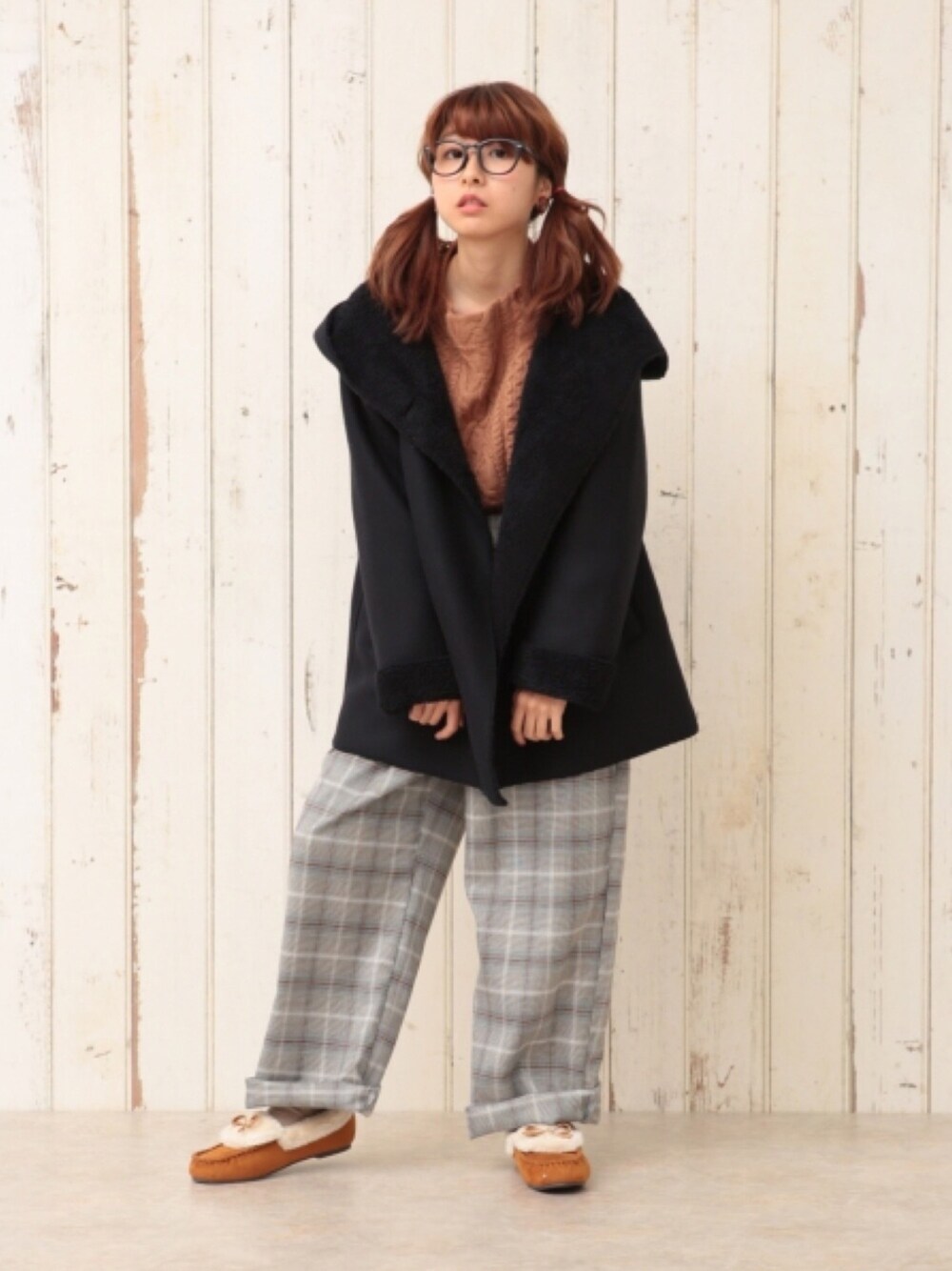 ピタちゃんのその他アウター「裏ボアフードラップハーフジャケット」を使ったコーディネート