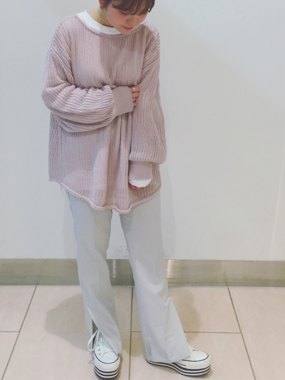 Mina(LOWRYS FARM mozo ワンダーシティ)のニット/セーター「スカシアミプルオーバー 875077」を使ったコーディネート