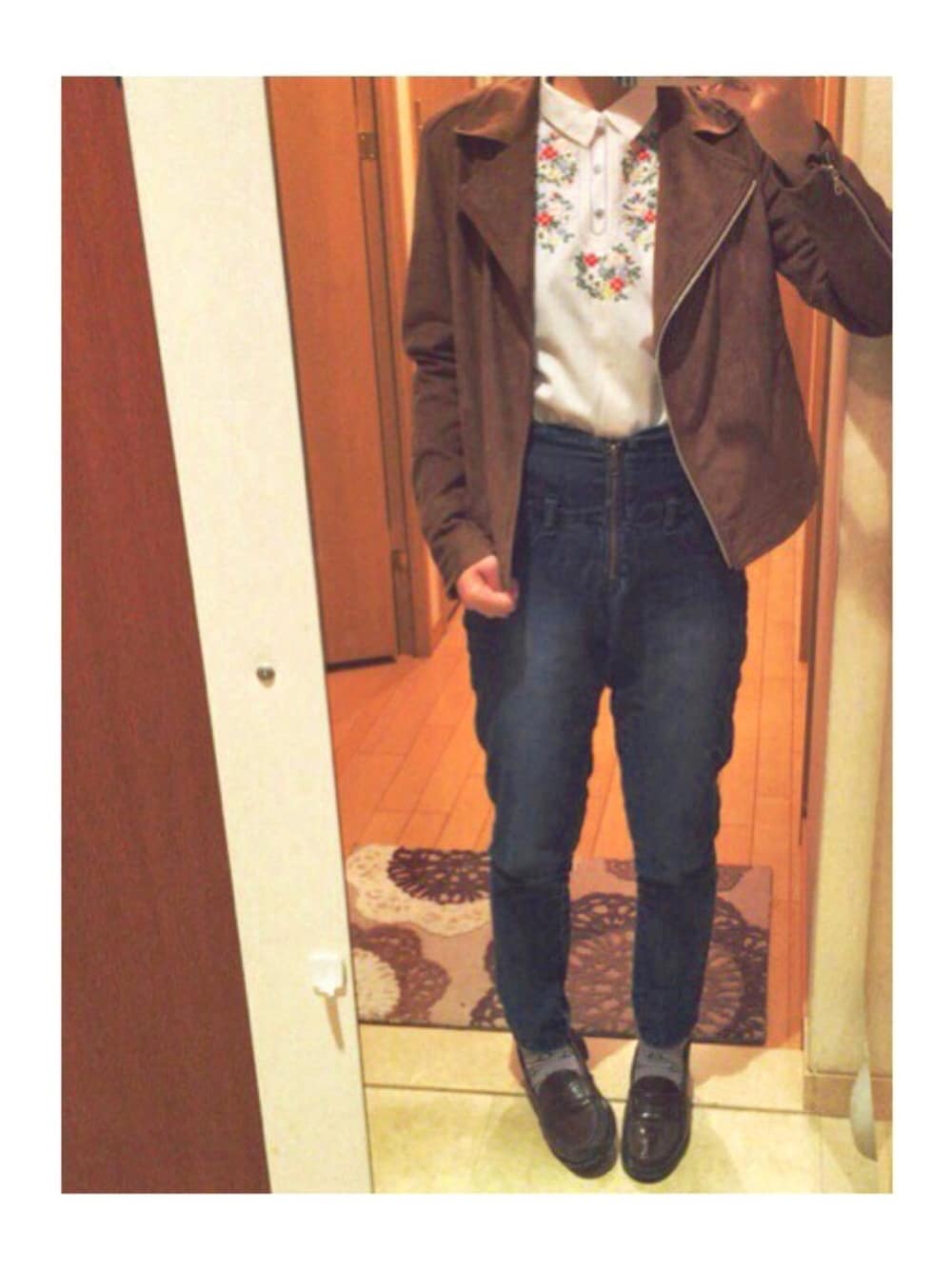 ちょっとしたお出かけなのでシンプルに! 花柄が入るだけで華やかに見えます🌼.* 襟がないのが慣れなくてシャツを重ね着してます💭 スニーカーを持ってないので、ちょっとそこまでの時はローファーがお決まり👏です笑