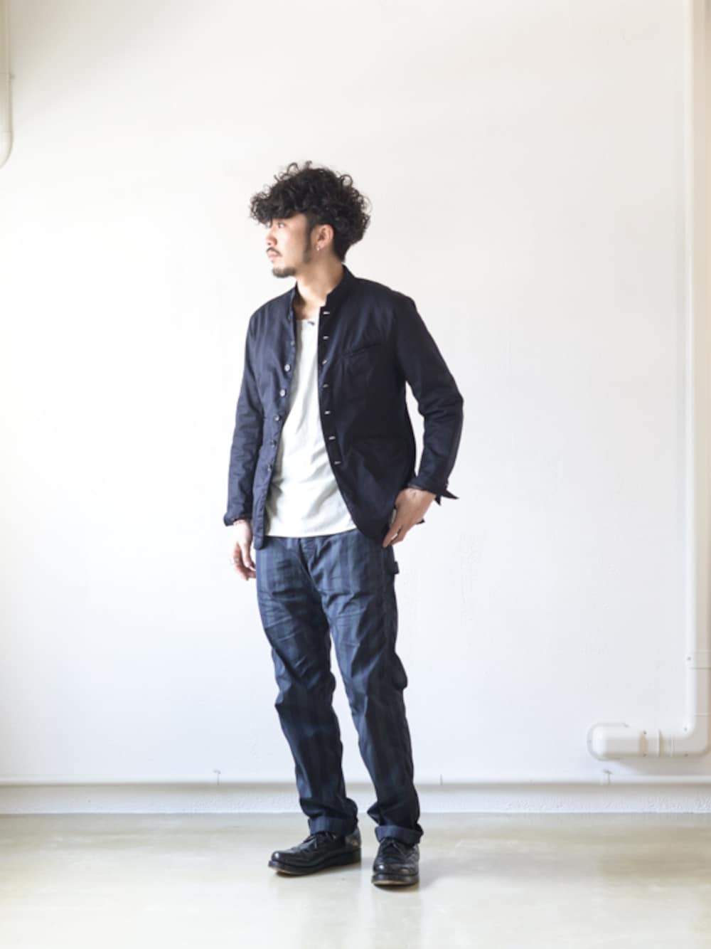 いっせいのテーラードジャケット「Engineered Garments Nehru Jacket - High Count Twill - Dk.Navy」を使ったコーディネート