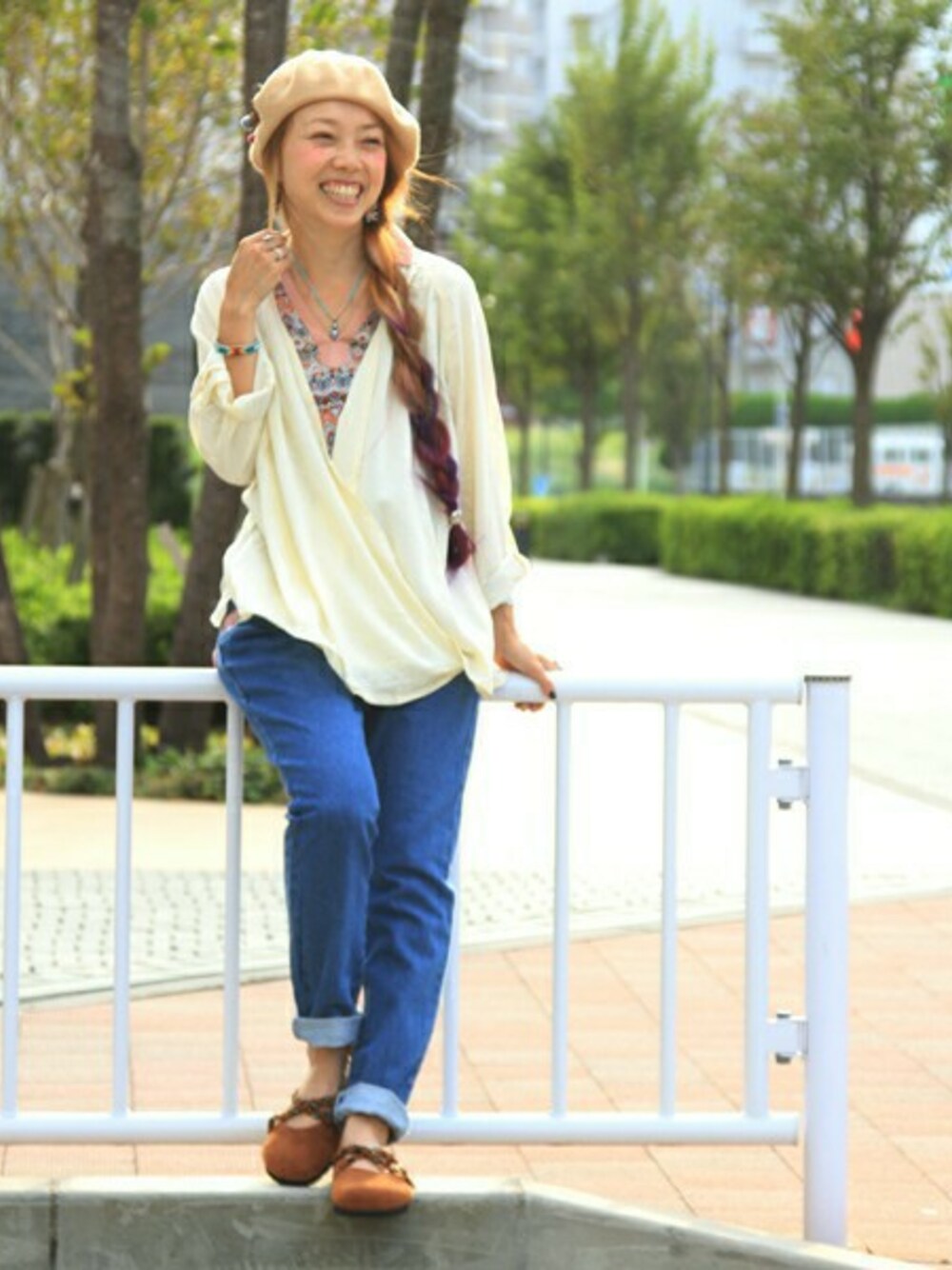 ゆったりルーズ感を楽しむシャツにデニムを合わせて。 オフィスカジュアルとしても使えるシャツは裏地がエスニック模様になっているんです◎ 爽やかな雰囲気にも秋の表情を感じて♪