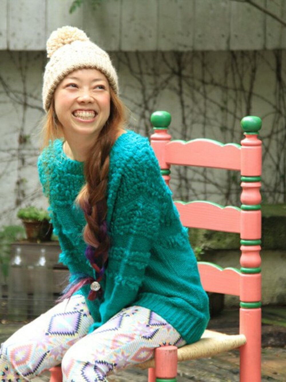 ビビッドなグリーンが目を引くゆるニットはネイティブ柄の細身のパンツを合わせて。 気取らずラフな着心地にガーリーであたたかみの感じるスタイリングに仕上げました。