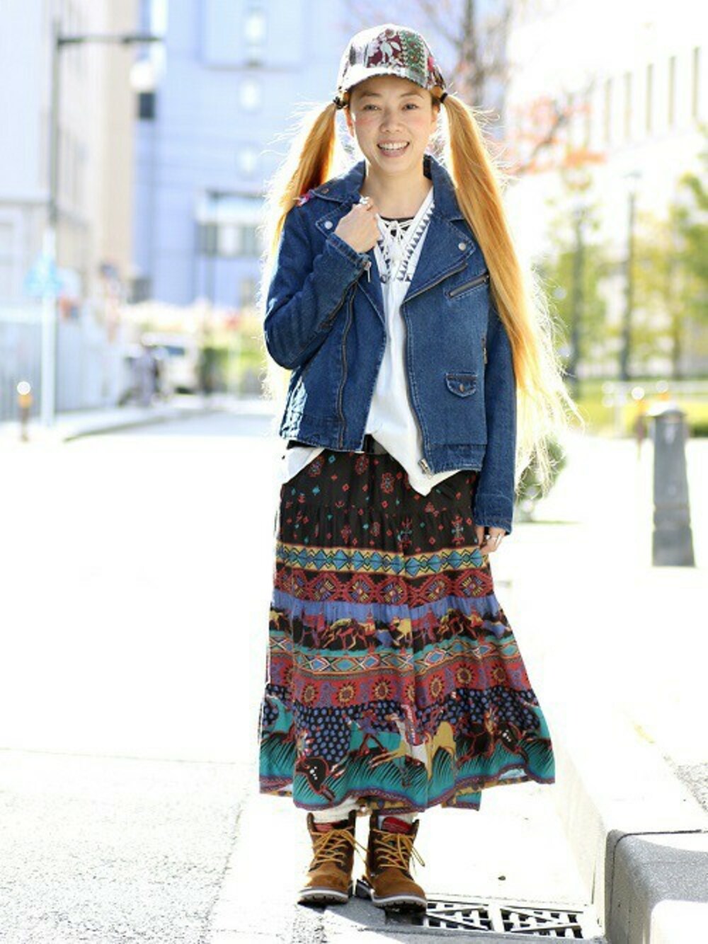 ティアードパンツとジャケットでカジュアルテイストなボヘミアンコーデ♪ ゴブラン織りのキャップで今年らしさアップ☆