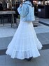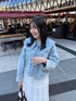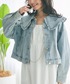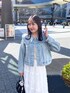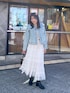 大きめの襟が可愛いデニムジャケット。 襟のフリルがポイントになっています! デニム生地なのでカジュアルに甘め要素をプラスできちゃいます。 繊細なレースのスカートと合わせてみました。