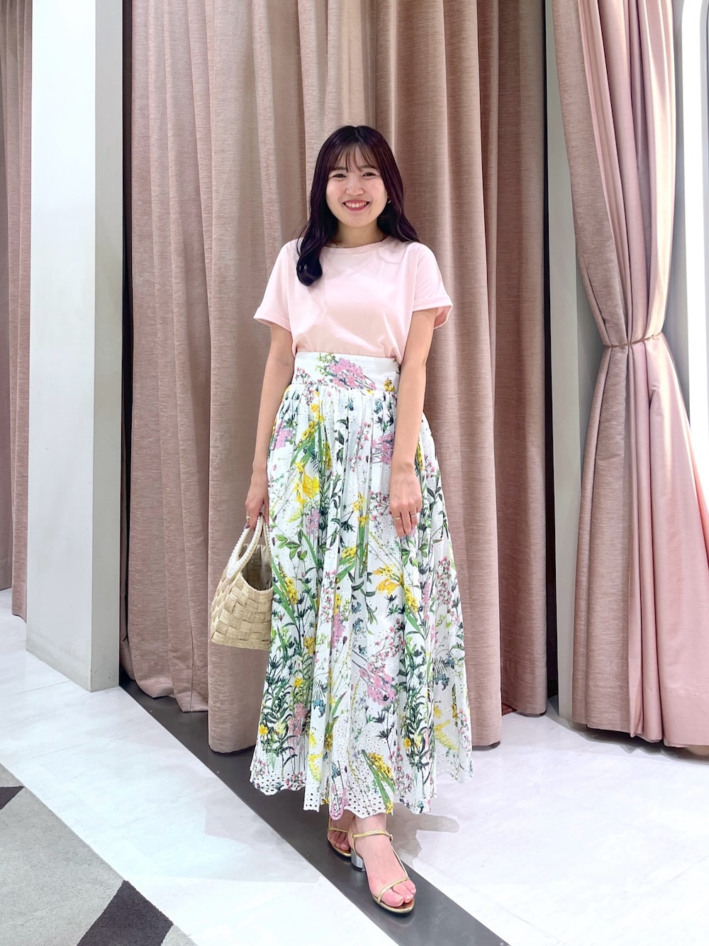minami(La boutique BonBon 有楽町マルイ店)のスカート「エンブロイダリーフラワープリントスカート」を使ったコーディネート
