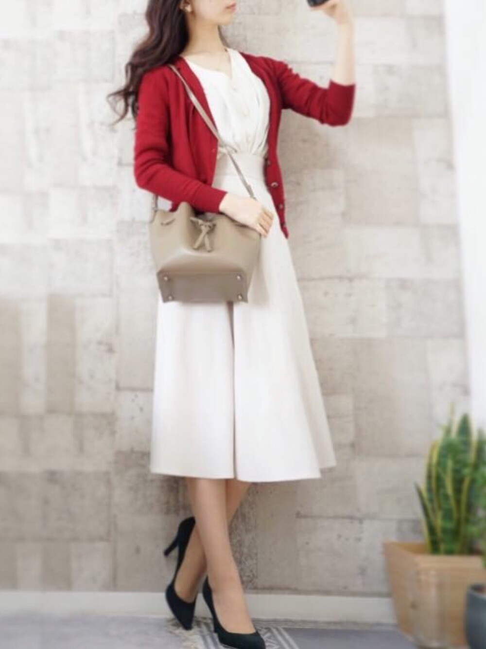 ユニクロ赤カーデコーデ。 白赤のツートーンコーデ。