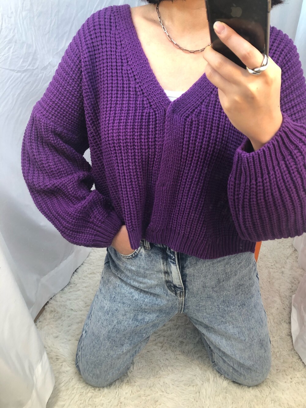 ショート丈Vネックカーディガン💜 当店に在庫あります🎶
