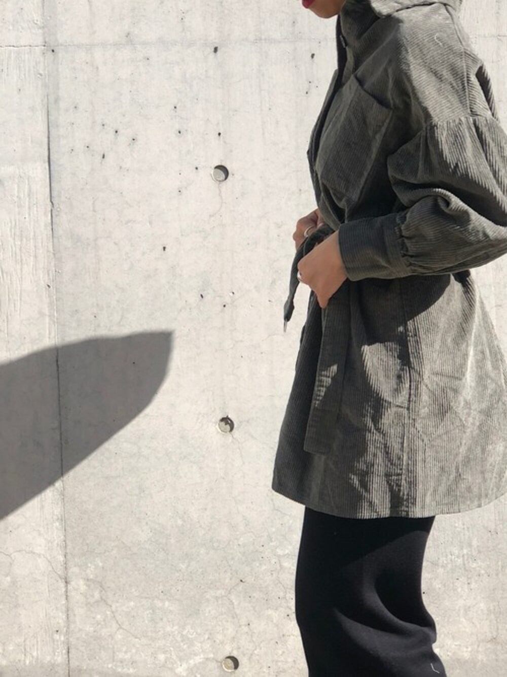 ボリュームのある袖で肩を落とし気味にコーデ👏 今年のトレンドコーデにコーデュロイは欠かせません🤲
