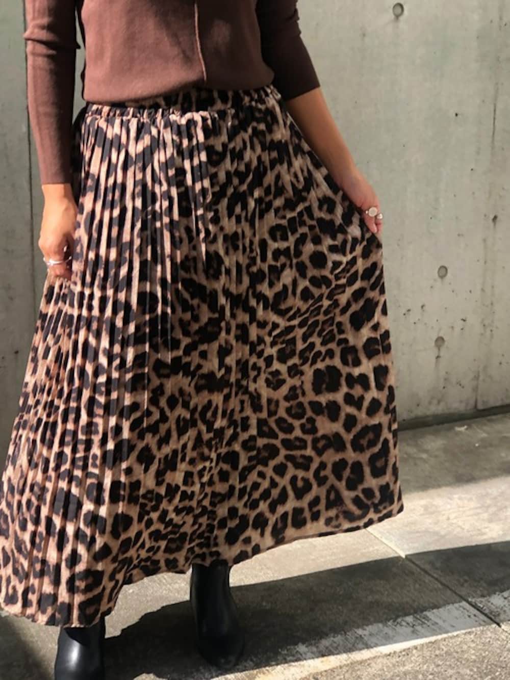 mina♡M SELECTのスカート「レオパードパターンプリーツスカート」を使ったコーディネート