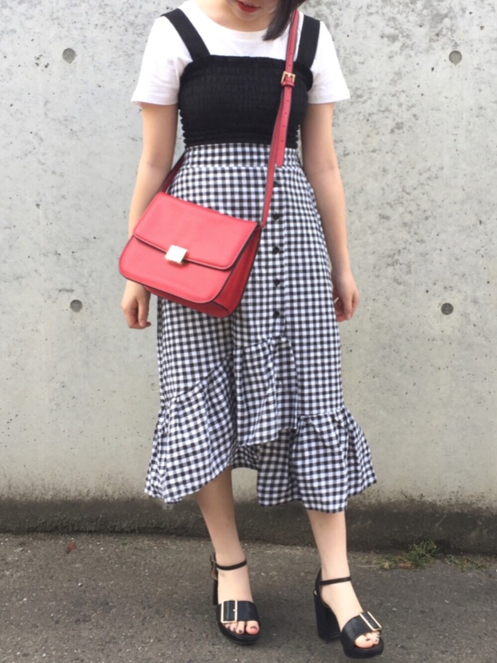 7/2 . . . 服の系統変わりすぎ〜〜〜 マーメイドアンバランススカートがお気に入りです👌🏻ギンガムチェックで、ますます女の子らしくって、私が幼稚園ぐらいに抱いていた、女の子らしい服装はこんな感じですね、、 似合わなさが、キモさを引き出してるから、もう甘×甘な着方やめよう、かわいい系ってきついって思い知らされた〜 プデュ2日目、神田のお胸が素敵だった、、、