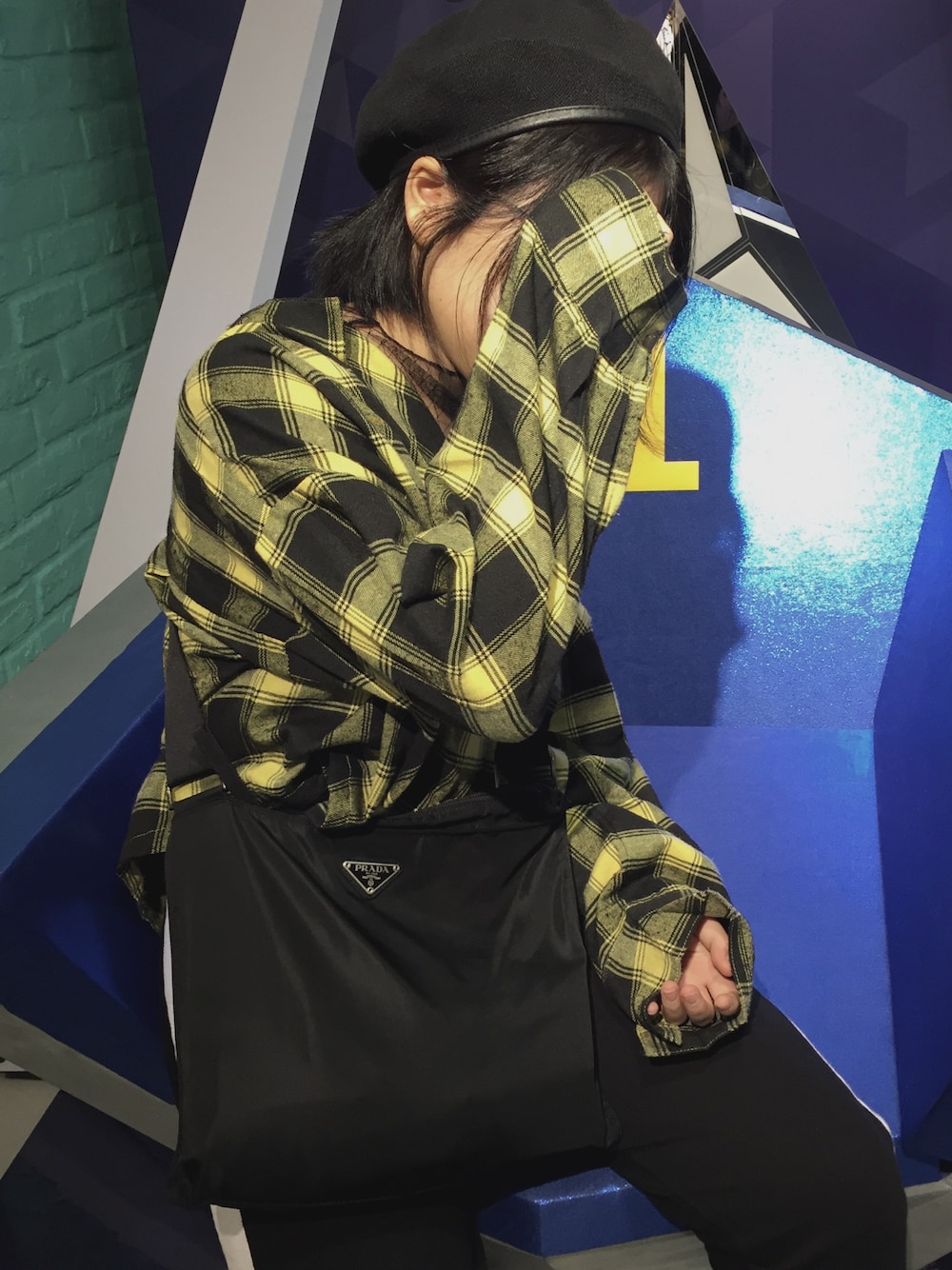黄色チェックの開襟シャツ、むちゃかわ。どこで買ったか忘れたけど() プデュのこの椅子座るために、バイト休みとって渋谷でぷらぷらしてる